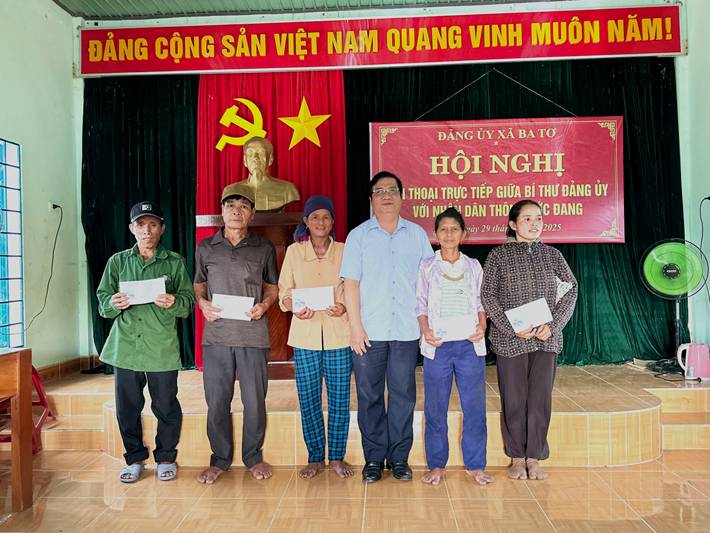 Tại buổi đối thoại, Đảng ủy xã Ba Tơ tặng 05 suất quà cho hộ nghèo, cận nghèo và hộ có hoàn cảnh khó khăn. Mỗi xuất 500 ngàn đồng.