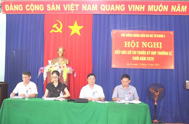 Chiều ngày 02/10/2025, Tổ đại biểu số 04 HĐND xã gồm các đồng chí Phạm Giang Nam; Ngô Hồng Thọ; Văn Hồng Phụng; Trần Thị Khánh Hoà đã tiếp xúc cử tri (TXCT) tại nhà văn hóa thôn Bắc Hoàn Đồn. Tham dự tại buổi tiếp xúc còn có đồng chí Đinh Trọng Thành, Phó Bí thư, Chủ tịch UBND xã; đồng chí Đinh Y Nam, UVBTV, Phó Chủ tịch HĐND xã.