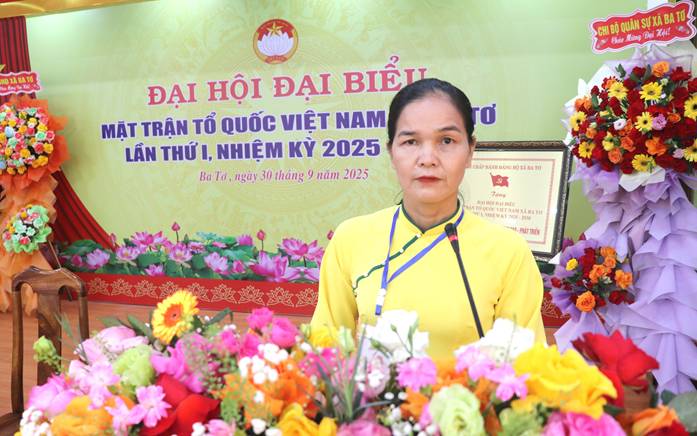 Đại hội đã hiệp thương cử Uỷ ban MTTQ Việt Nam xã Ba Tơ khoá I, nhiệm kỳ 2025 - 2030 gồm 50 ủy viên. Hiệp thương đề cử đồng chí Phạm Thị Hà, giữ chức Chủ tịch Uỷ ban MTTQ Việt Nam xã nhiệm kỳ 2025 - 2030.