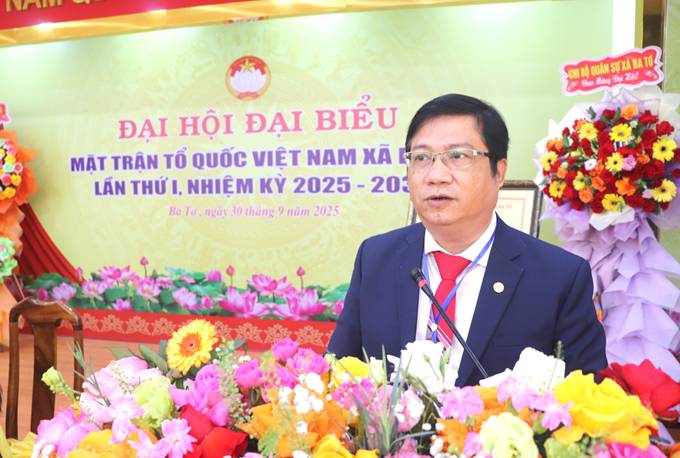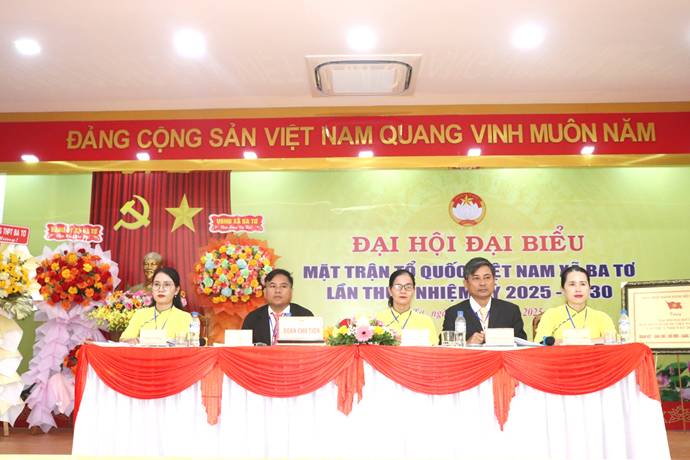 Sáng 30/9, tại hội trường Đảng ủy xã, xã Ba Tơ long trọng tổ chức Đại hội đại biểu UBMTTQVN xã Ba Tơ lần thứ nhất, nhiệm kỳ 2025 - 2030. Tham dự và chỉ đạo tại Đại hội có đồng chí Phạm Giang Nam, Bí thư Đảng ủy, Chủ tịch HĐND xã; Dự Đại hội còn có các đồng chí Phạm Văn Chiêng, Phó Bí thư Thường trực Đảng ủy xã; đồng chí Đinh Trọng Thành, Phó Bí thư, Chủ tịch UBND xã; đồng chí Đinh Y Nam, UVBTV, Phó Chủ tịch HĐND xã; đồng chí Phạm Thị Hà, UVBTV, Chủ tịch UBMTTQVN xã; đồng chí Nguyễn Anh Khoa, UVBTV, Phó Chủ tịch UBND xã; Đại diện lãnh đạo các cơ quan tham mưu giúp việc Đảng ủy; các phòng chuyên môn của UBND xã và 141 đại biểu chính thức