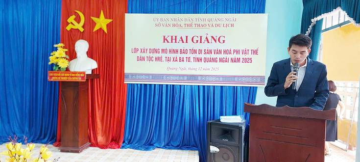 Sáng ngày 09/12/2025, tại Trung tâm GDNN và GDTX khu vực Ba Tơ, Sở Văn hoá, Thể thao và Du lịch tỉnh Quảng Ngãi đã tổ chức khai mạc mô hình bảo tồn di sản văn hoá phi vật thể của dân tộc H’rê tại xã Ba Tơ.